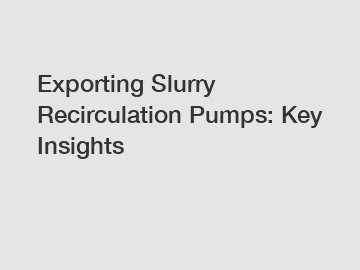Exporting Slurry Recirculation Pumps: Key Insights